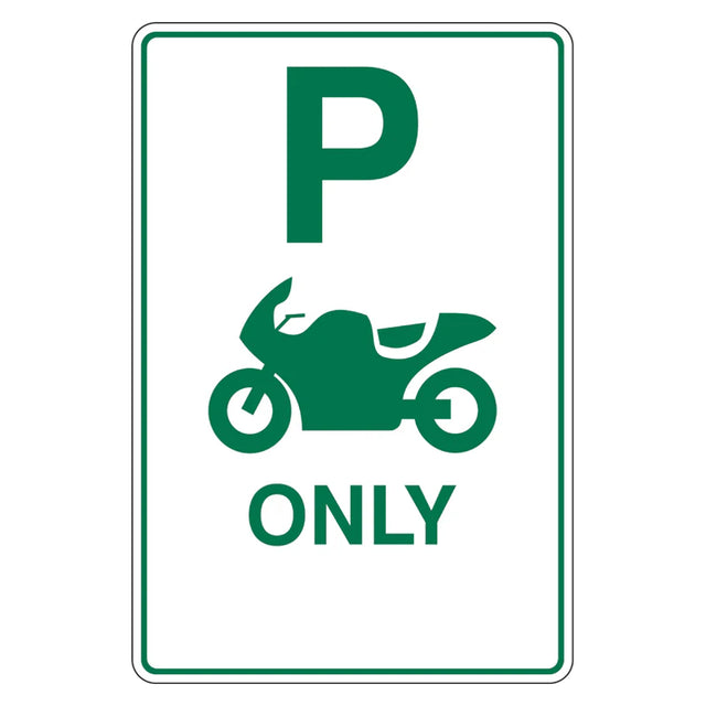 Design: Bold icon of a motorcycle paired with clear “Motorbike Only” text for easy recognition