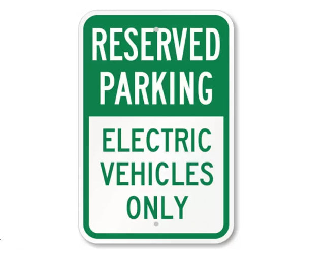Design: Features a clean EV charging symbol with bold “Reserved Parking for Electric Vehicles Only” text